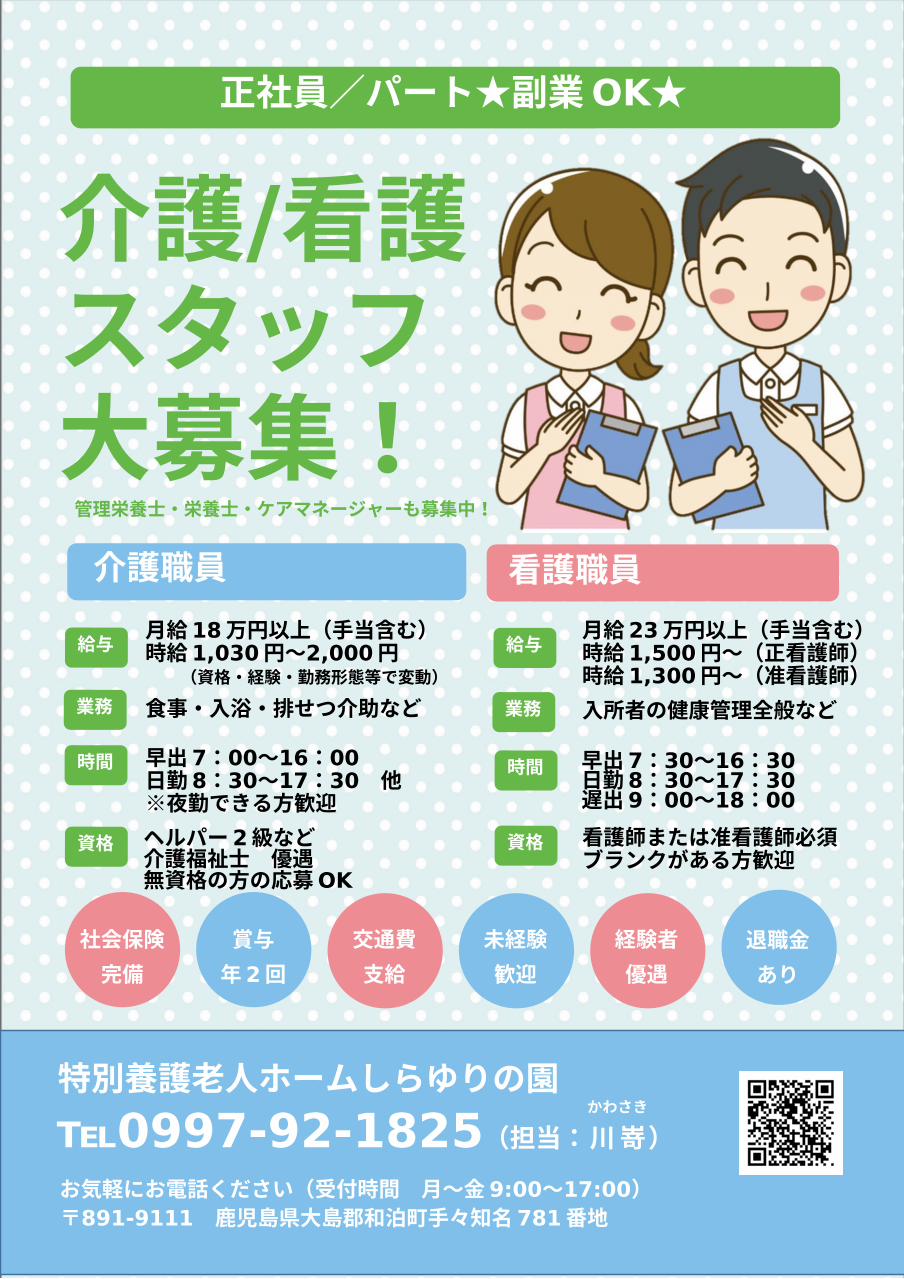 正職・パートの看護師・准看護師・介護職員を探しています。
